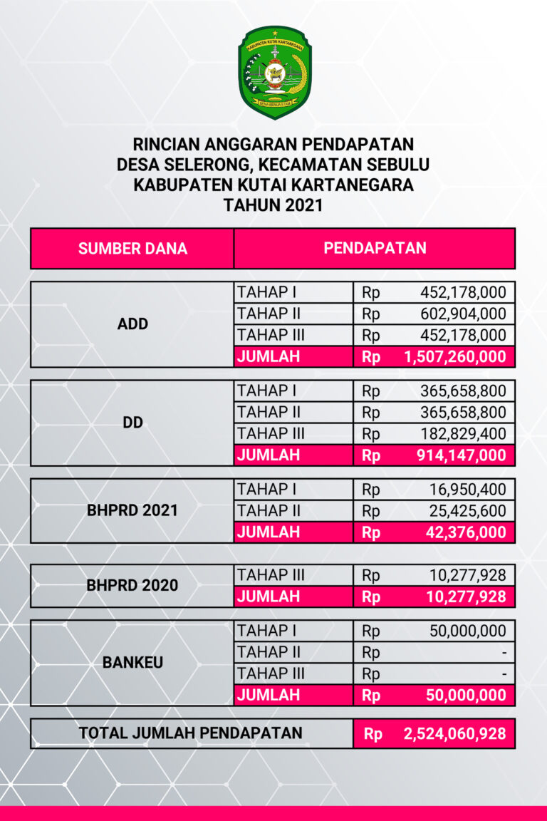Infografik DesaPembangunanPemberdayaanPembinaanPemerintahanINFOGRAFIK PAGU PENDAPATAN TRANSFER DESA SELERONG, KEC. SEBULU TAHUN 202113 Januari 2021