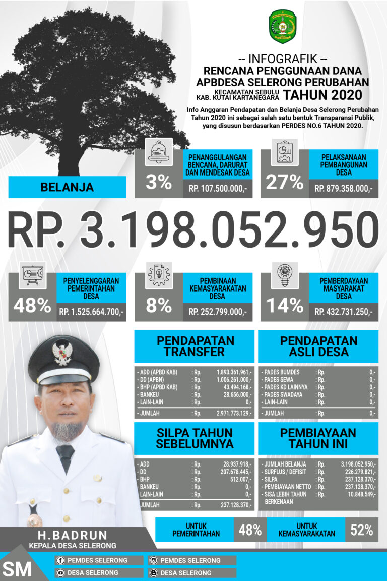 Infografik DesaPembangunanPemberdayaanPembinaanPemerintahanINFOGRAFIK RENCANA PENGGUNAAN DANA APBDES SELERONG, KEC. SEBULU TAHUN 202016 Januari 2020