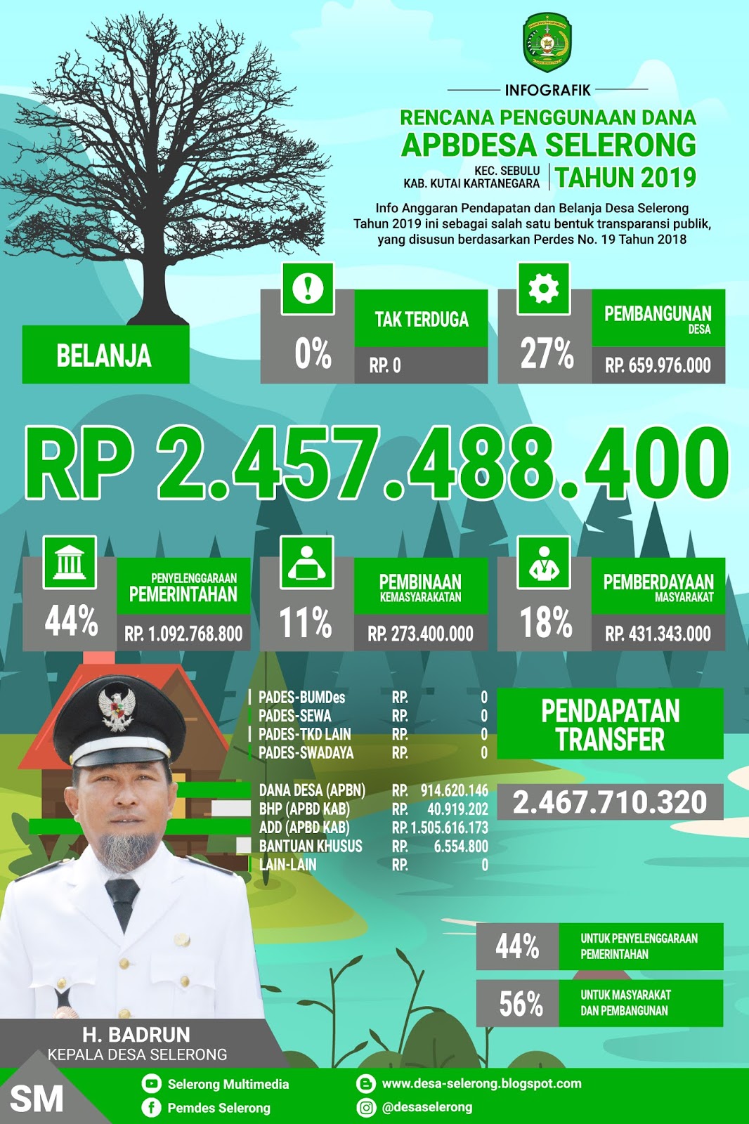 INFOGRAFIK RENCANA PENGGUNAAN DANA APBDES SELERONG, KEC. SEBULU TAHUN 2019
