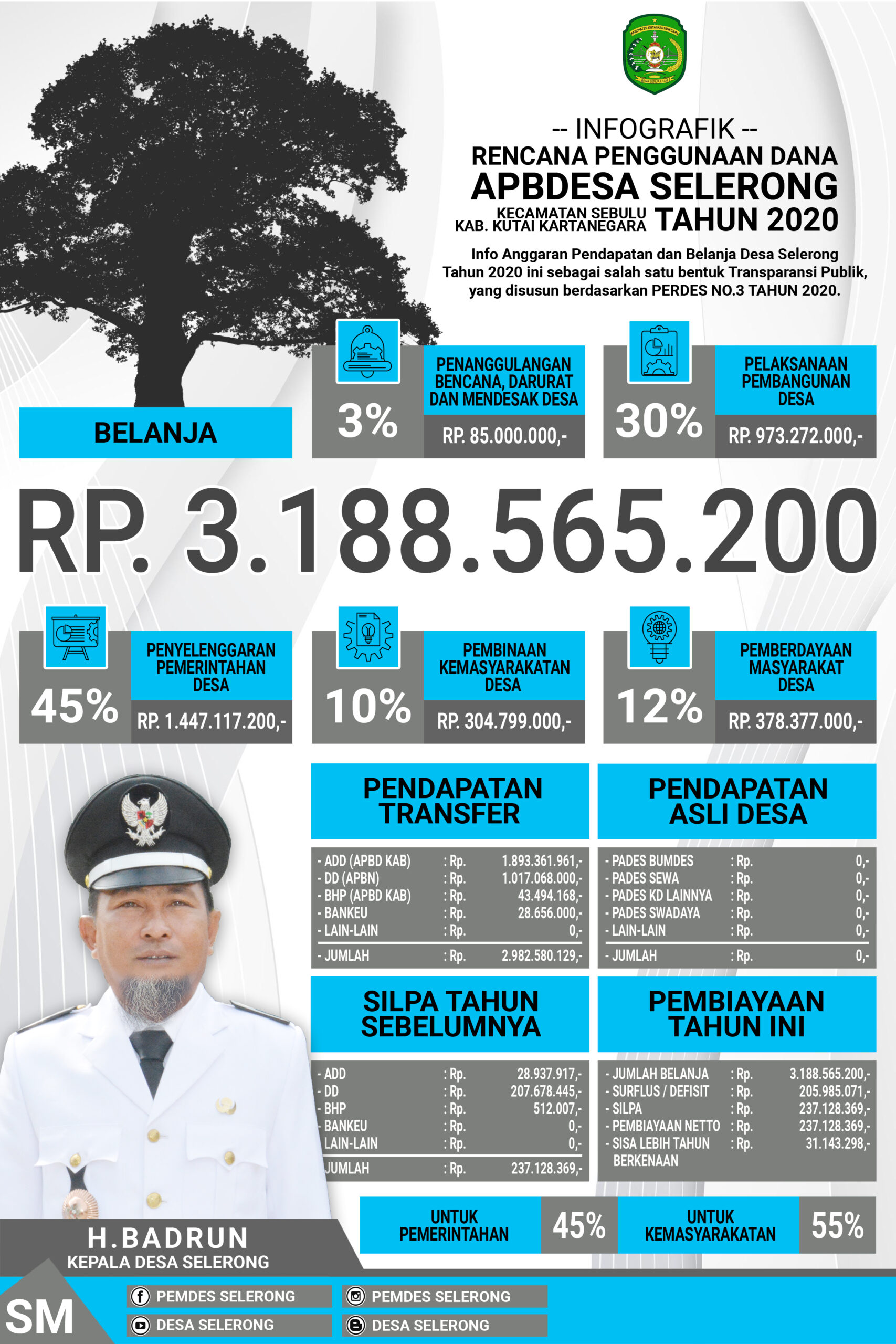 INFOGRAFIK RENCANA PENGGUNAAN DANA APBDES SELERONG, KEC. SEBULU TAHUN 2020