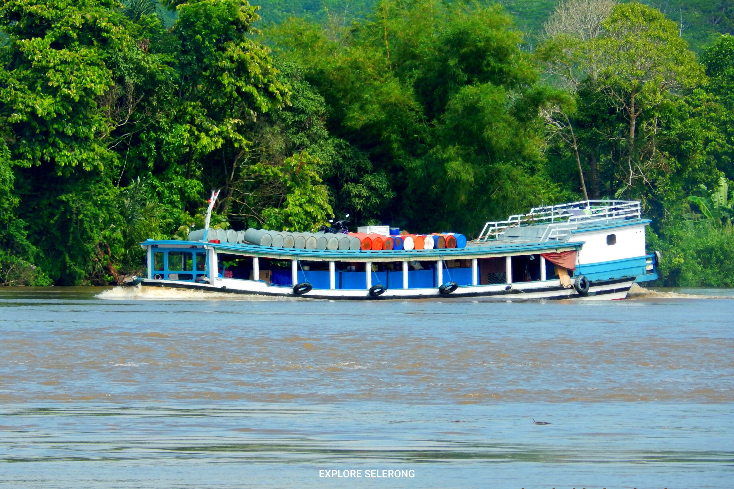 KAPAL MELAK YANG SEDANG LEWAT DI SUNGAI MAHAKAM DESA SELERONG, KEC. SEBULU